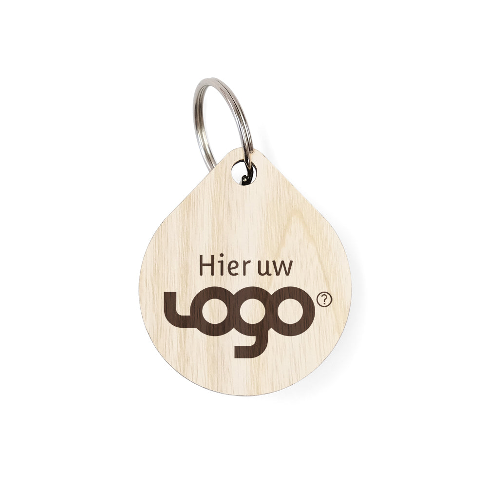 Massief houten sleutelhangers met jouw logo. In diverse vormen en uitvoeringen. Vanaf 100stuks te bestellen.